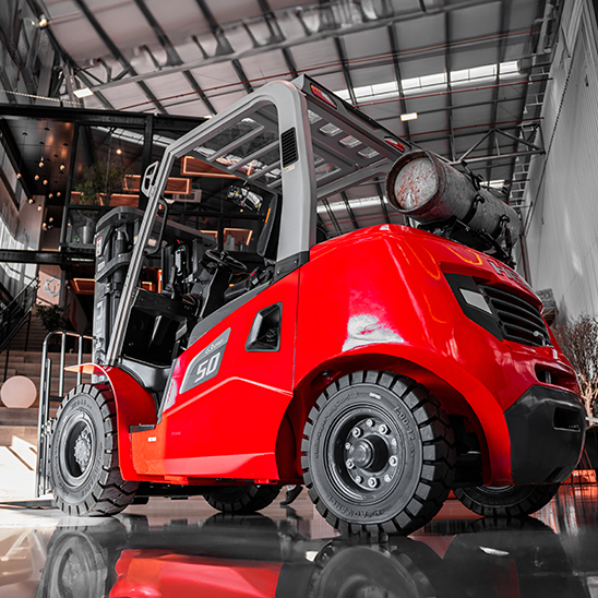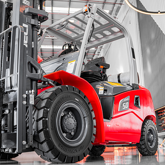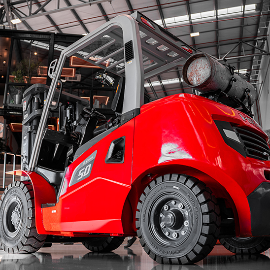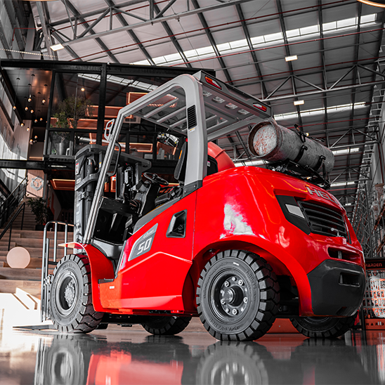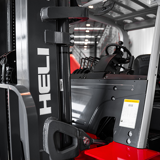 • O design de partes fundamentais como: estrutura, mastro, proteção superior e eixo de direção, melhoram a segurança e a confiabilidade da empilhadeira como um todo.